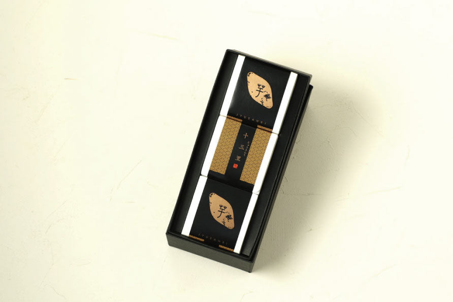 十三里(じゅうさんり)・・・ほくほくしたさつま芋の生地で、国産渋皮栗を丸ごと包んだ味わい深い焼菓子。