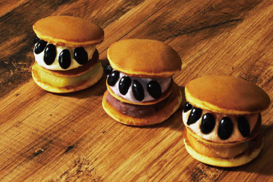 どら生地、さつま芋のあんとクリームに黒豆があわさることで絶妙な味わいに。